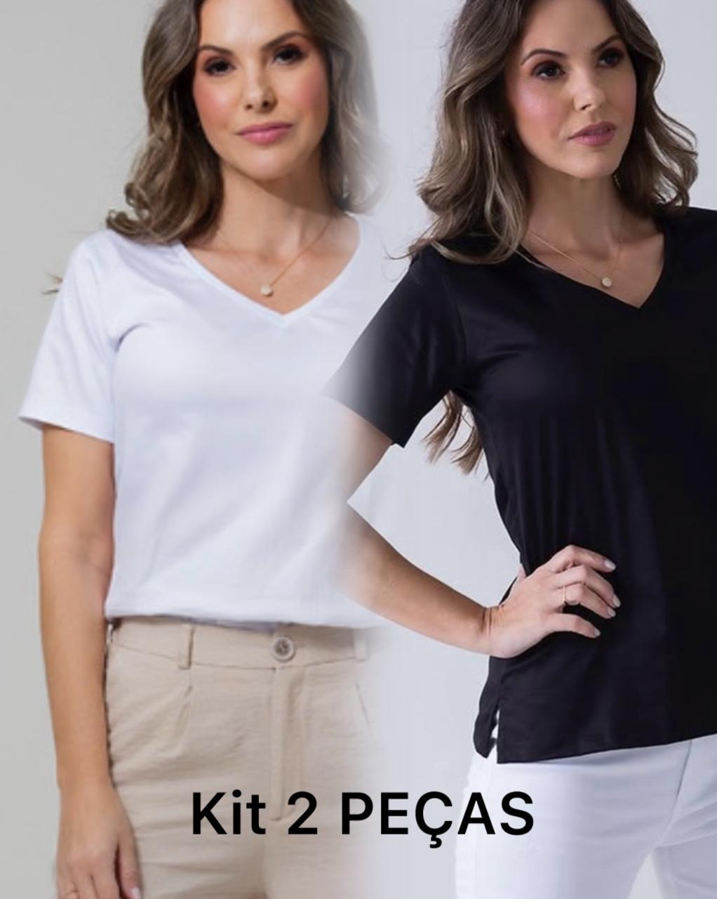 KIT 2 PEÇAS - CAMISETA GOLA V PRETA E BRANCA - ALGODÃO EGÍPCIO